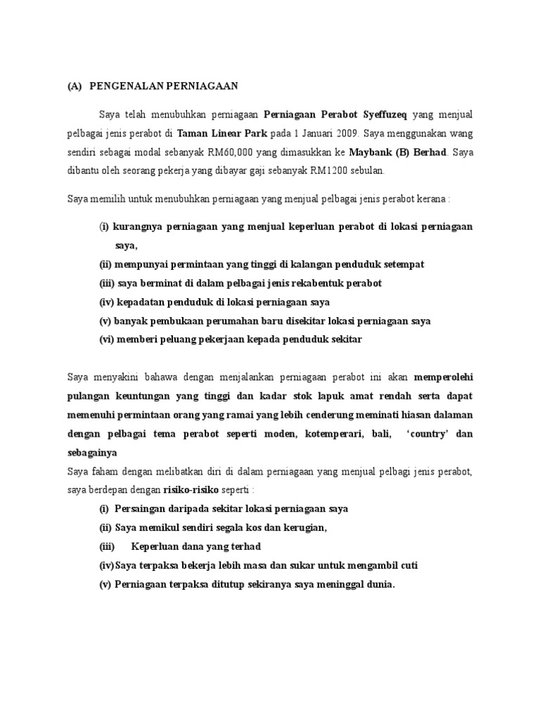 Rancangan Perniagaan Kedai Perabot Kertas Kerja 21 Jun 2013 Tarikh Mula Berniaga No More Me N You